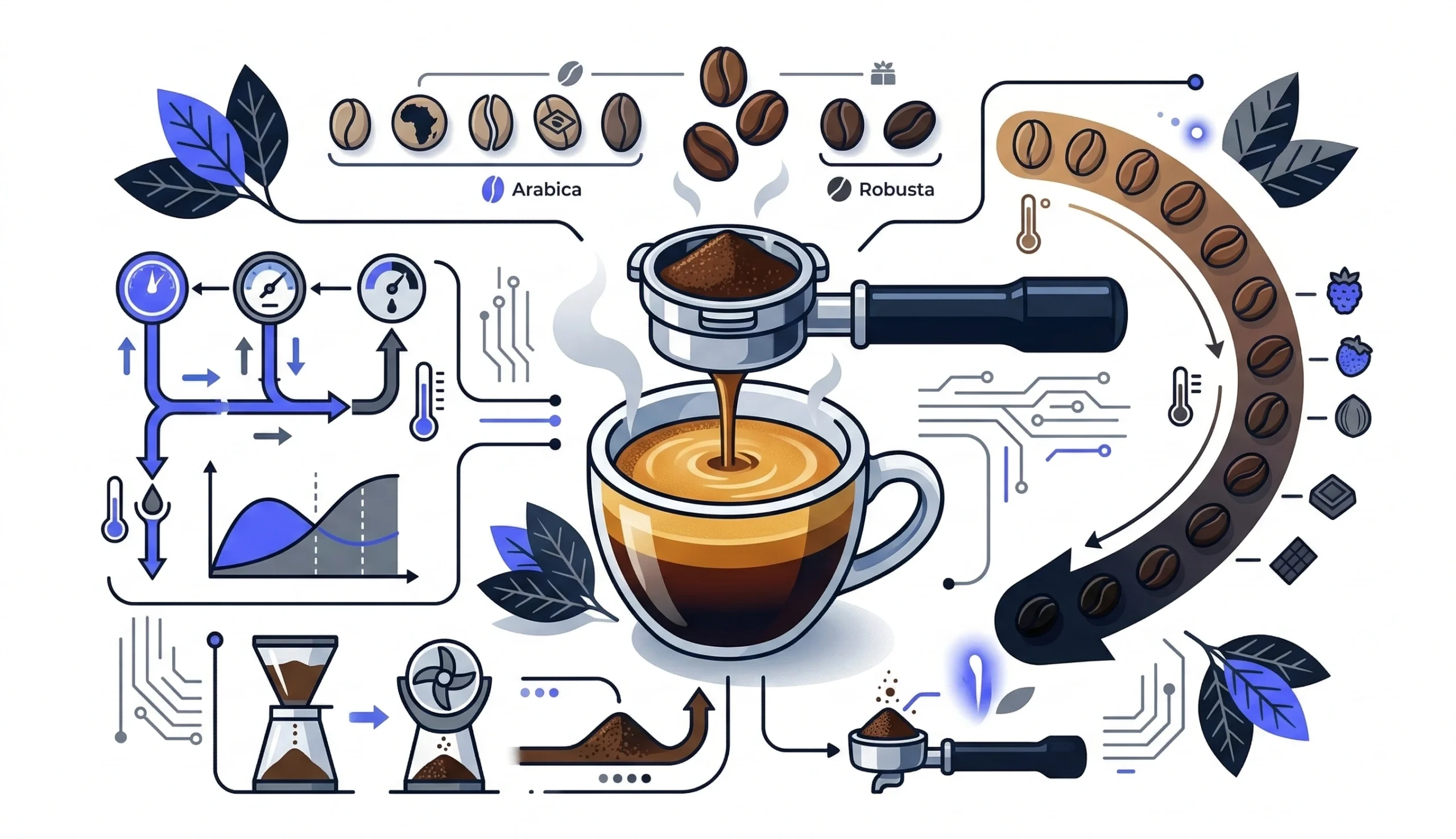 - Many espresso blends combine Arabica and Robusta to balance flavor, strength, and crema.